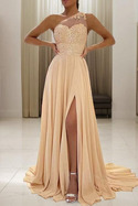 Polovice chrbta A Riadok Šifón Prírodné pása Rozdeliť vpredu Večerné šatyTieto šaty boli úžasné. Látka aj kvalita boli vynikajúce. Vrelo ich odporúčam každému. Sú skvelé pre všetky typy postáv. Veľkosť zodpovedá.