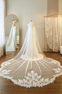 Jednovrstvový katedrálový svadobný závoj z čipky