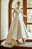 Asymetrické Dlhé Zavesený Lopatka Satén Prírodné pása Poroka OblekoToto je nevyhnutná kúpa, vyzerá to, ako na obrázku, s výnimočnou kvalitou. Bola som skeptická, ale po tom, čo som minulý týždeň dostala šaty, som rada, že som ich kúpila práve tu a nie v svadobnom obchode. Nebojte sa, sú legitímne.