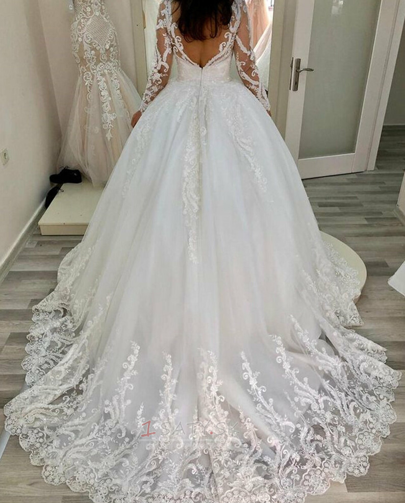 Tyl Formálne Prírodné pása Dlhými rukávmi Kostol Svadobné šatyTyl Formálne Prírodné pása Dlhými rukávmi Kostol Svadobné šaty