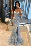 Morská panna Zips hore Off rameno Kožušiny Trblietanie Večerné šaty